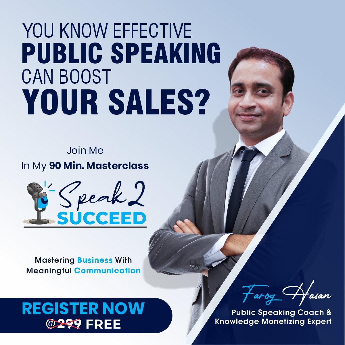 Farog Hasan Is A Public Speaking Coach & Knowledge Monetizing Expert. He Has His Expertise In The Field Of Public Speaking, Communication, Mind Management, Leadership & Vision Development.